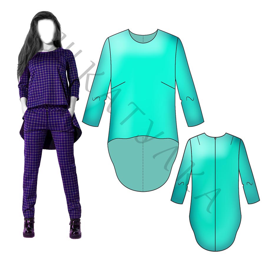 Выкройка блузы с перепадом длины размеры 40-66 Россия, бесплатные прикрепляем, остальное можно скачать в источнике