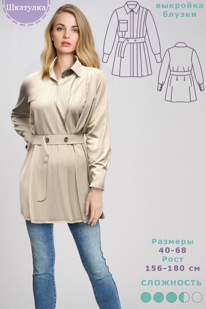Выкройка женской блузки-рубашки размеры 40-68 на 5ть ростовок