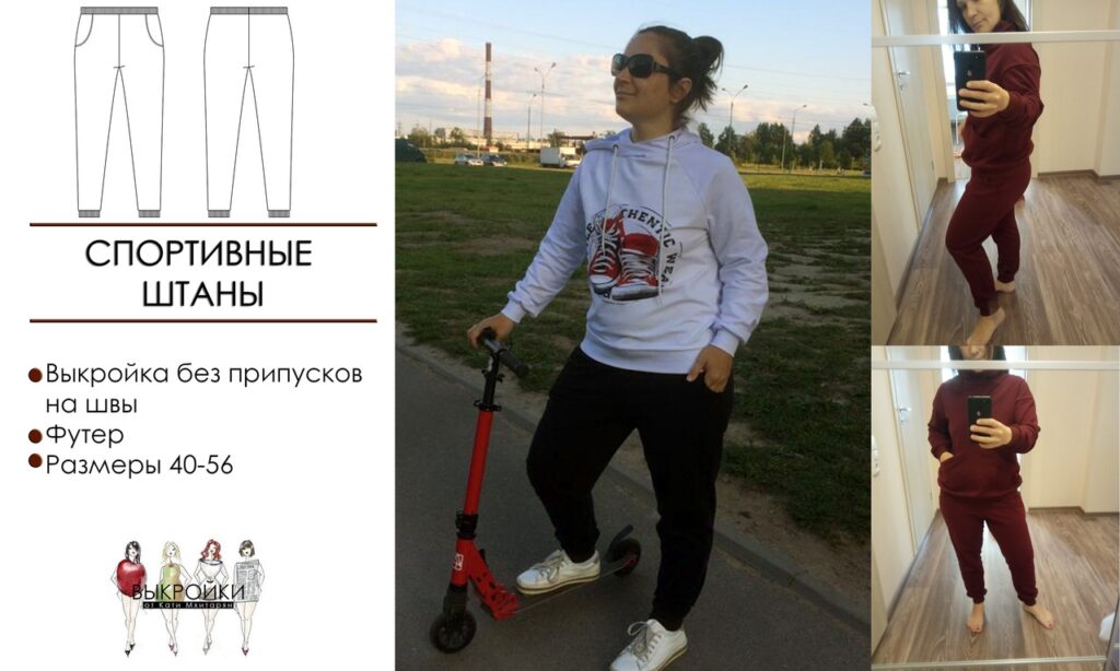 Выкройка женских спортивных штанов размер 40-56 россия