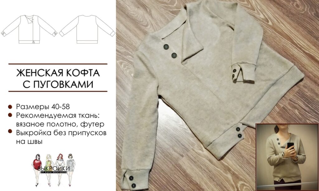 Выкройка “Женская кофта с пуговками” размеры 40-58