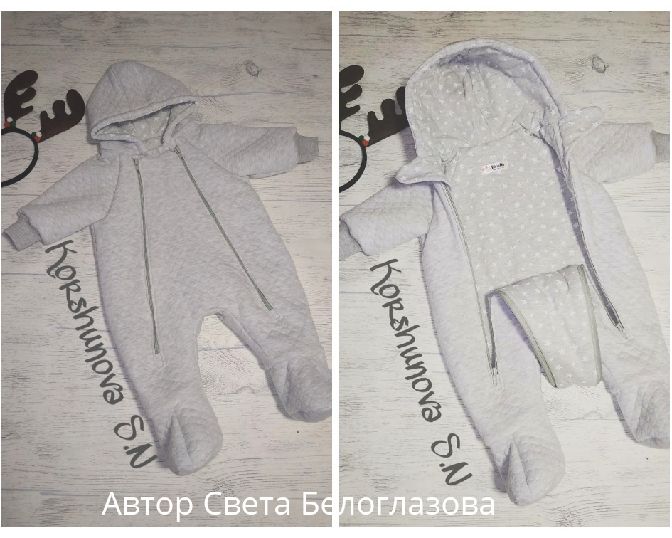 Выкройка комбинезона с двумя молниями рост 58 на возраст 0-3 мес