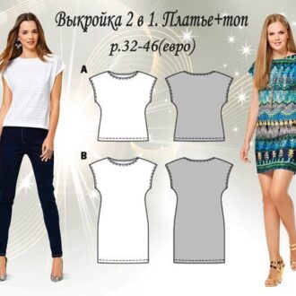 Выкройка комплекта блузка + юбка Размер 34-56 евро
