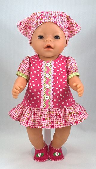 Выкройка летнего комплекта на куклу: платья, тапочки и косынка