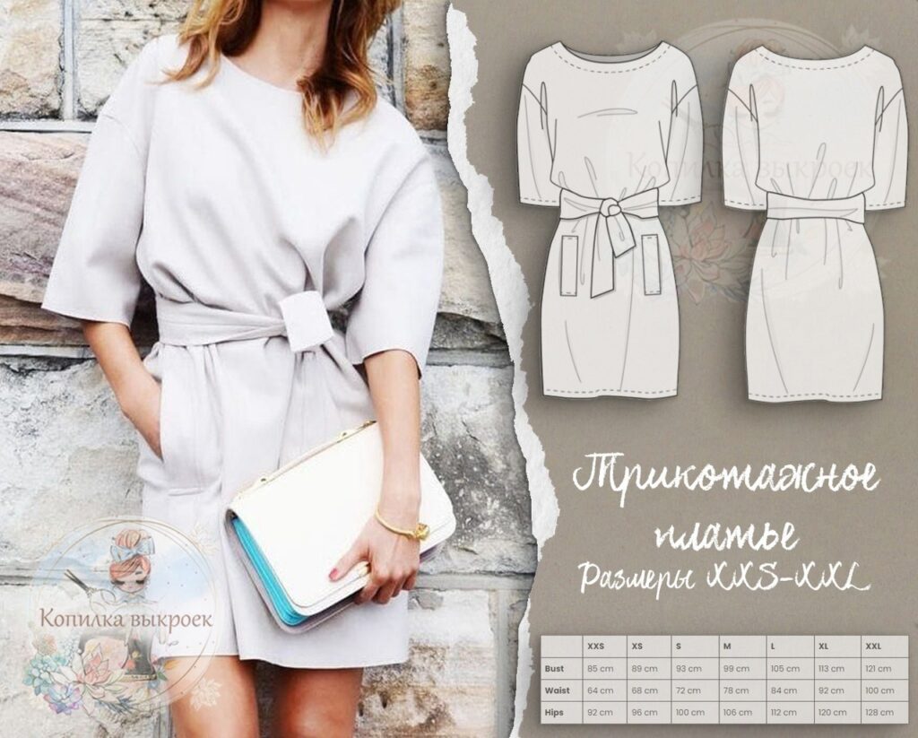Выкройка трикотажного платья xxs-xxl