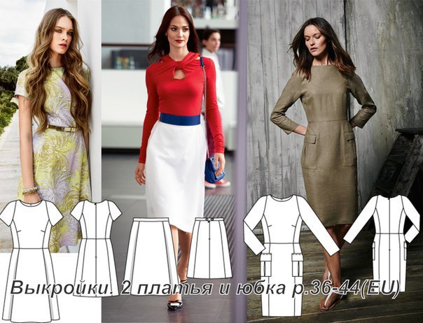 Выкройки. 2 платья и юбка р.36-44(EU)