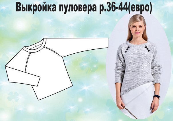 Выкройка пуловера р. 36-44eur
