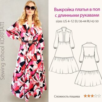 Выкройка платья в пол с длинными рукавами р. 42-50