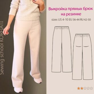 Выкройка женских прямых брюк с поясом на резинке сразу на 5 стандартных размеров — с 42-го по 50-й!