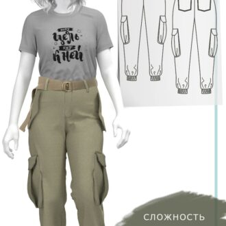 Выкройка женских брюк карго размеры 40-68 Россия рост 156-180
