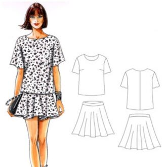 Выкройка комплекта блузка + юбка Размер 34-56 евро