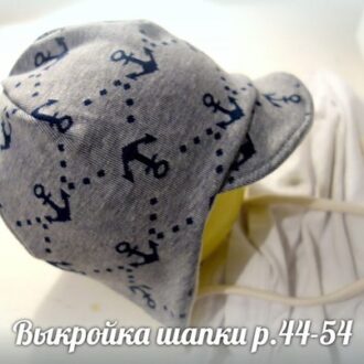 Шапочка с козырьком Выкройка на Ог 44-54см – ушки на завязках