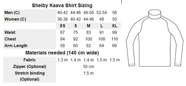 Выкройка термобелья унисекс размерыXS-XL