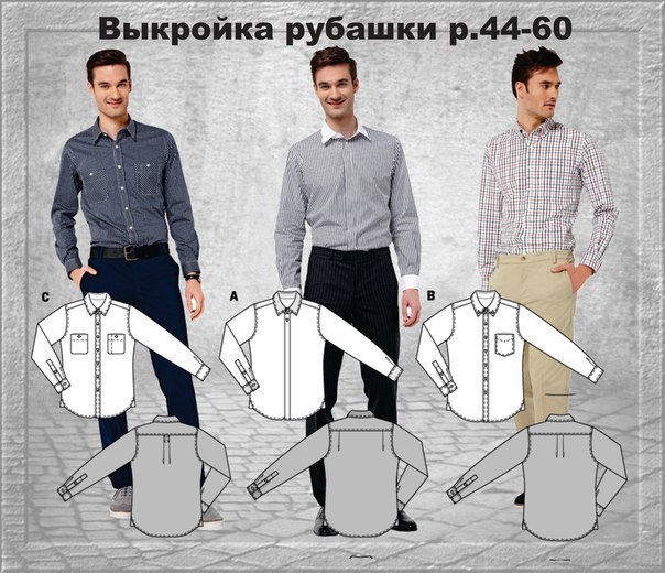 Выкройка мужской рубашки р.44-60