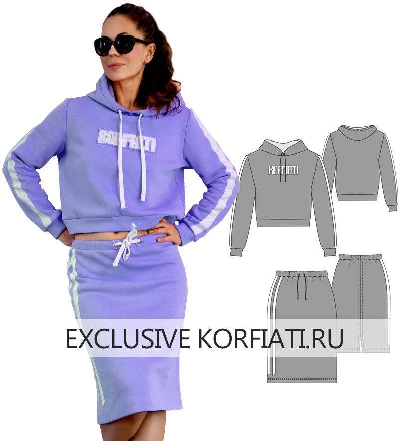 Готовая выкройка трикотажного костюма — худи и юбка размеры 42-50рос