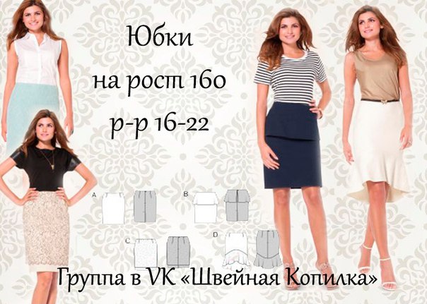 Выкройка юбки на рост 160см р-р 16-22 2 варианта юбки