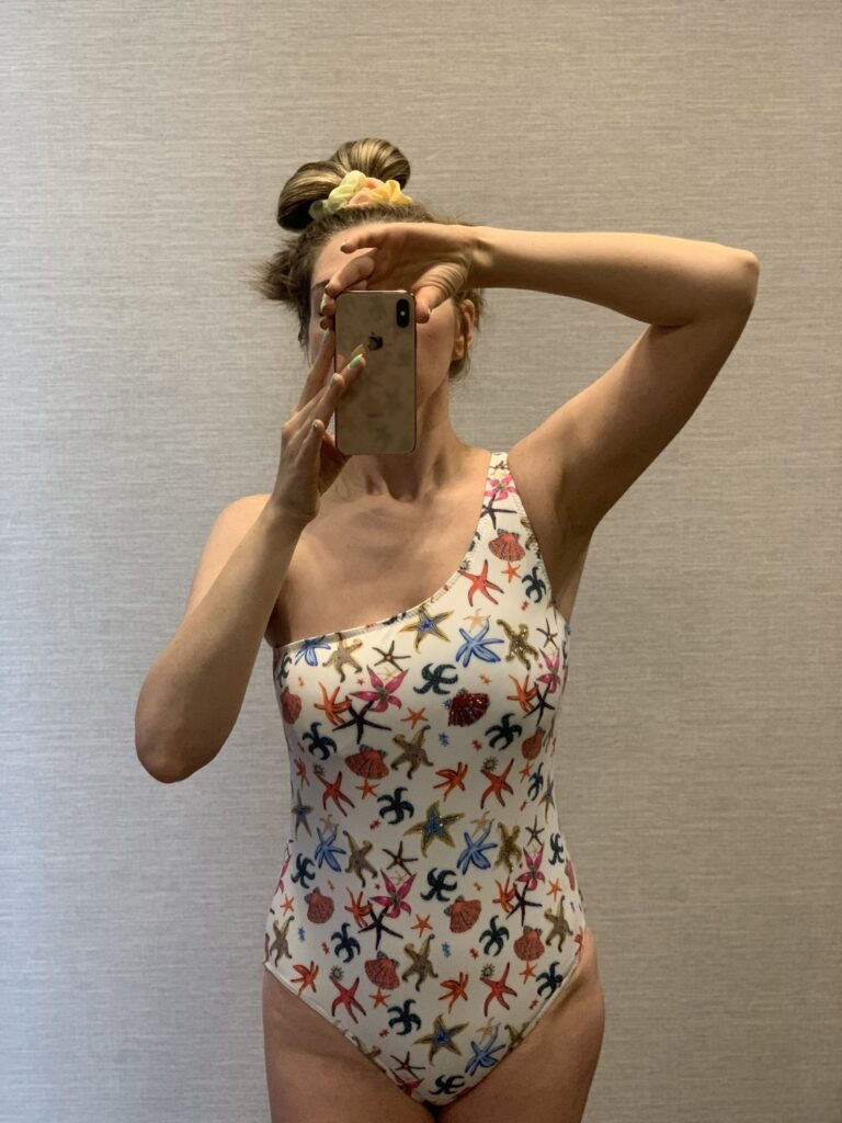 Сегодня мы шьем купальник с воланом на подкладке по готовой выкройке от “Шкатулки”.