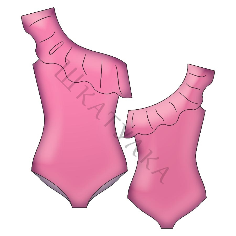 Выкройка женского сплошного купальника с воланом размер 40-58 Россия + МК по пошиву